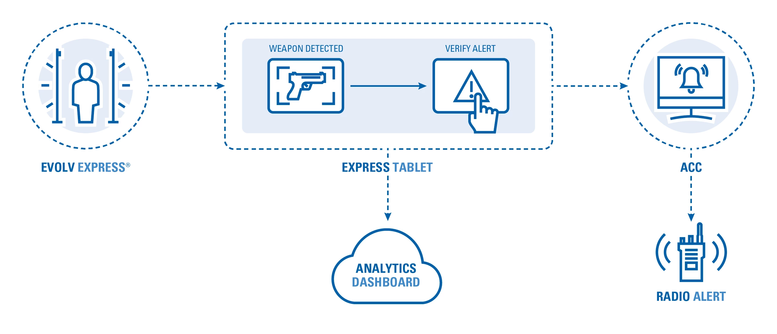 Motorola Solutions Concealed Weapons Detection (CWD), powered by Evolv Technology, helps to proactively keep people and assets safe by using advanced sensors and artificial intelligence to detect a wide range of concealed weapons and threats. It is the world’s first and only touchless security screening solution that is conducive to supporting post-pandemic security screening requirements. This solution operates up to 10 times faster and far more effective than traditional screening methods, while providing a touchless experience.